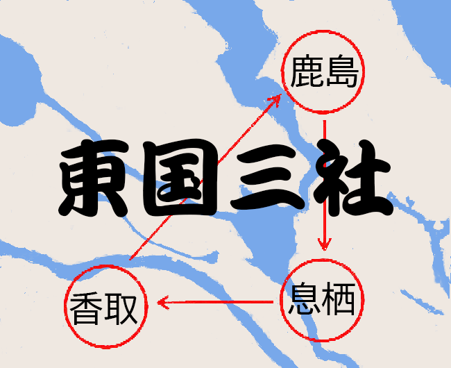 「東国三社」とは江戸時代に関東以北の人々によって始まった習わしで、伊勢神宮参拝の後に「禊ぎの三社参り(下三宮巡り)」として”鹿島神宮”、”香取神宮”、”息栖神社”の三社(トライアングルゾーン)を参拝したそうです。